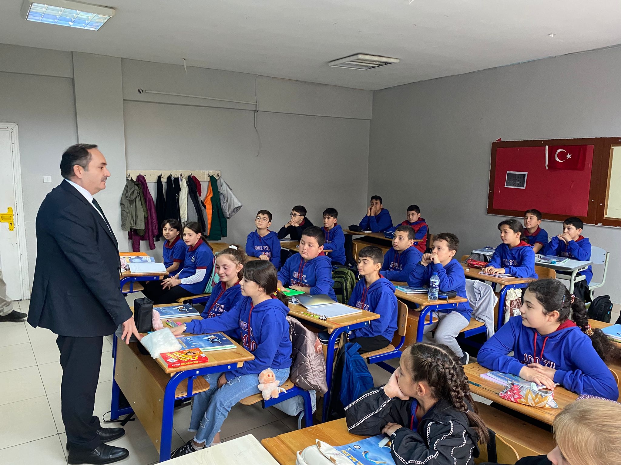 İlçe Milli Eğitim Müdürümüz Sayın Süleyman Pehlivan, 100. Yıl Şehit Mustafa Nehir Ortaokulu'nu ziyaret ederek Bayrak Törenine katıldı.