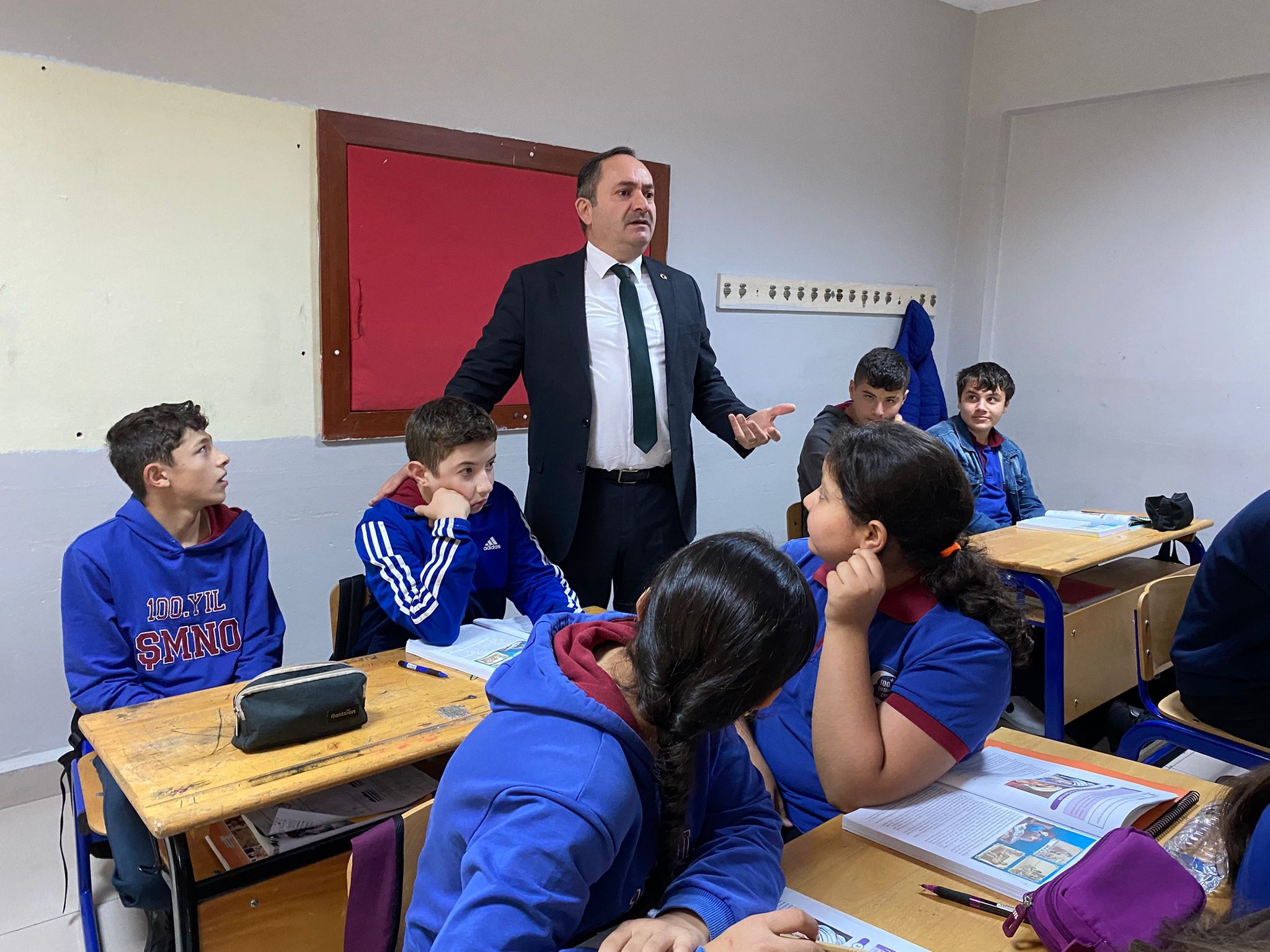 Ardından sınıfları ziyaret edip öğrencilere derslerinde başarılar dileyerek eğitim hayatlarında her zaman azim ve gayretle ilerlemeleri gerektiğini vurguladı.