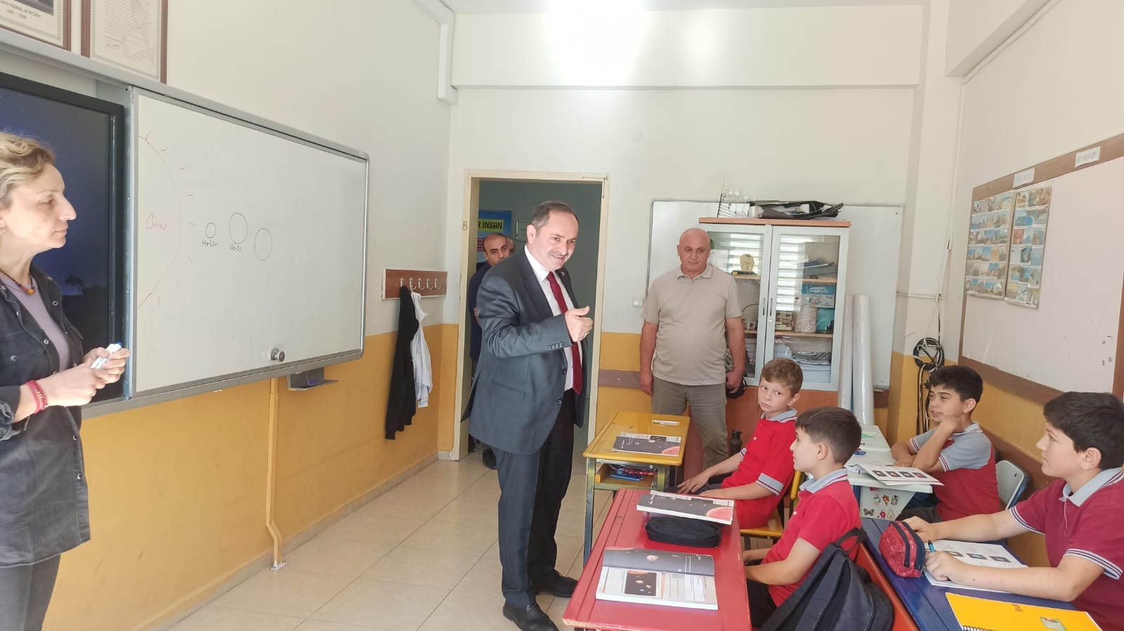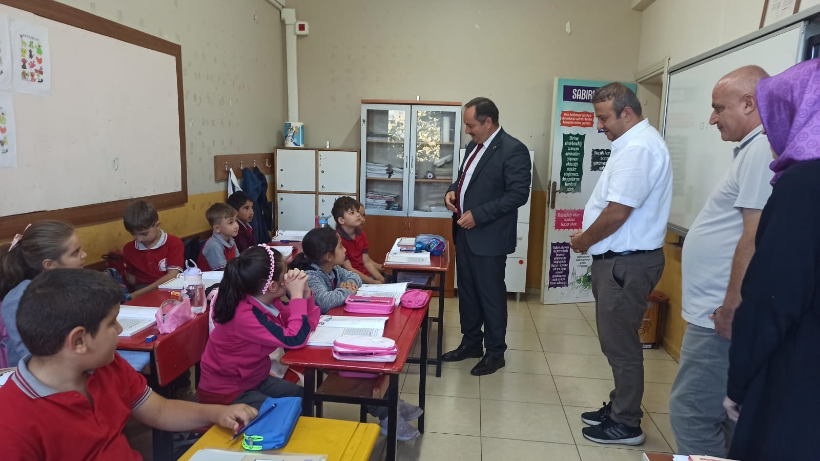 Ardından sınıfları gezerek öğrencilerle buluşan müdürümüz, öğrencilerle bir süre sohbet edip onların heyecanına ortak oldu. Okul yönetici ve öğretmenlerine çalışmalarında başarılar dileyen İlçe Milli Eğitim Müdürümüz ziyaretini tamamladı.