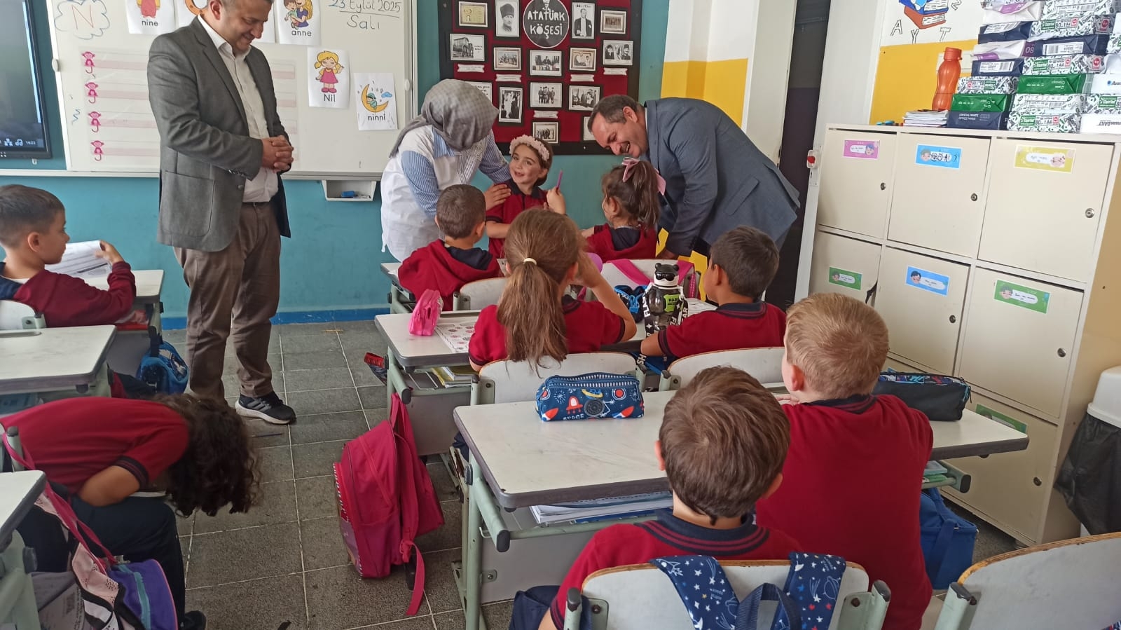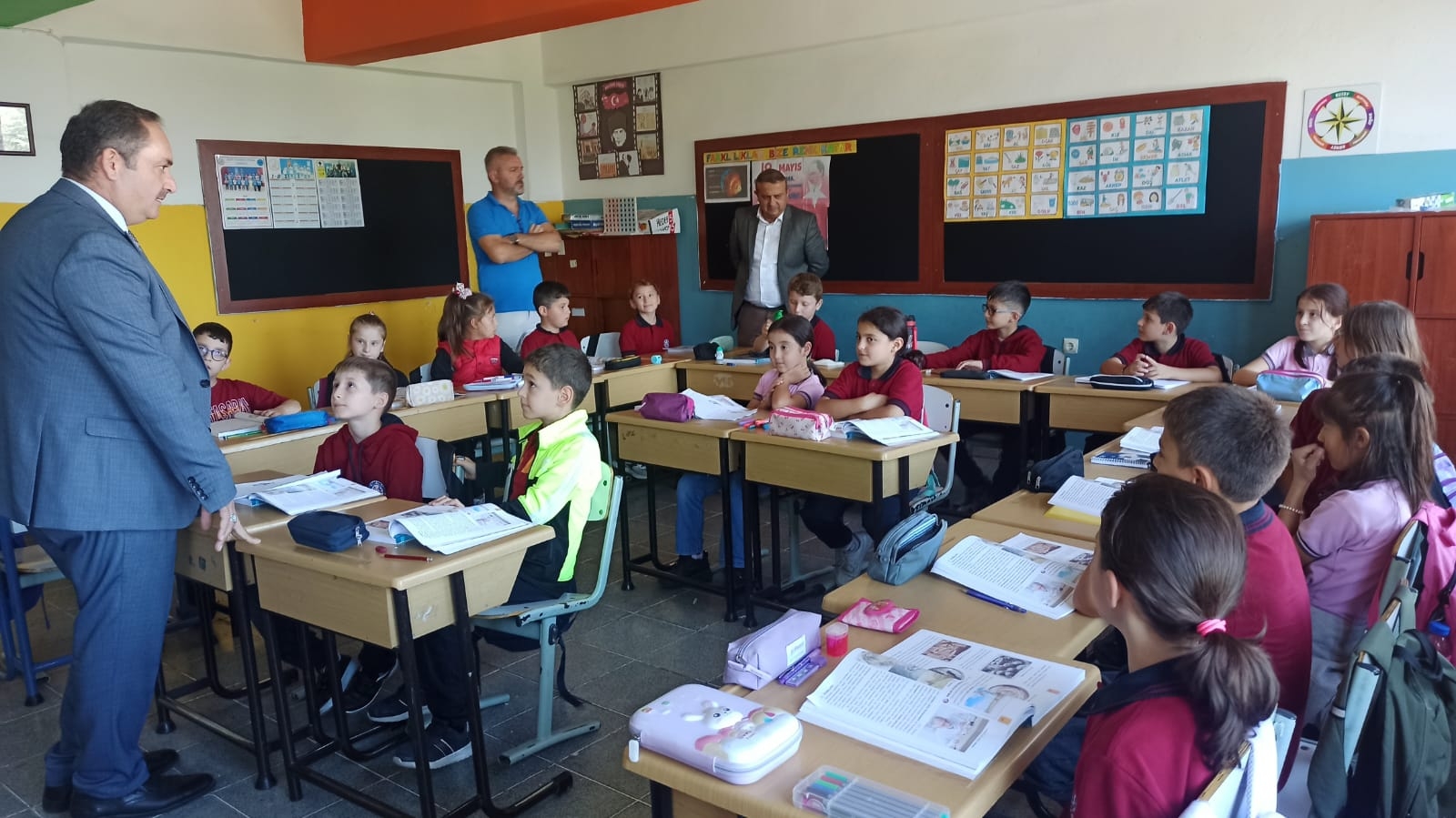 Müdürümüz, sınıfları ziyaret edip öğrencilere derslerinde başarılar dileyerek eğitim hayatlarında her zaman azim ve gayretle ilerlemeleri gerektiğini vurguladı.